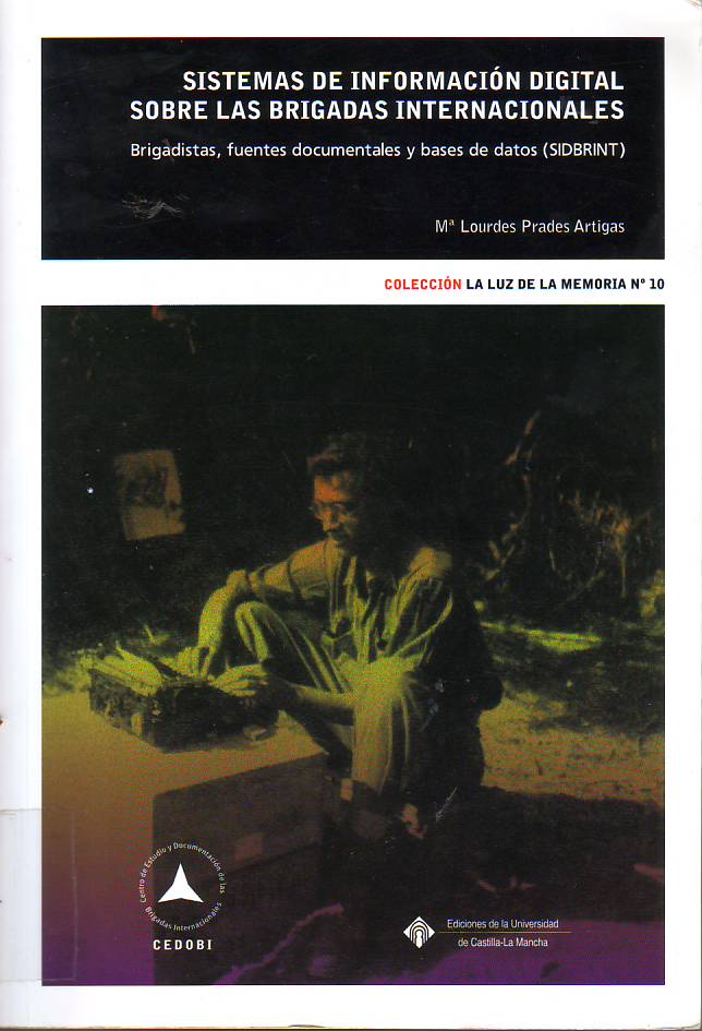 PRADES i ARTIGAS, M. Lourdes. Sistema de información digital sobre las brigadas internacionales : Brigadistas, fuentes documentales y bases de datos (SIDBRINT). Cuenca : Ediciones Universidad Castilla-La Mancha, 2012. 188 p. (La luz de la memoria ; 10) Font documental PRADES i ARTIGAS, M. Lourdes. Sistema de información digital sobre las brigadas internacionales : Brigadistas, fuentes documentales y bases de datos (SIDBRINT). Cuenca : Ediciones Universidad Castilla-La Mancha, 2012. 188 p. (La luz de la memoria ; 10) Tipus de font documental Llibre o opuscle